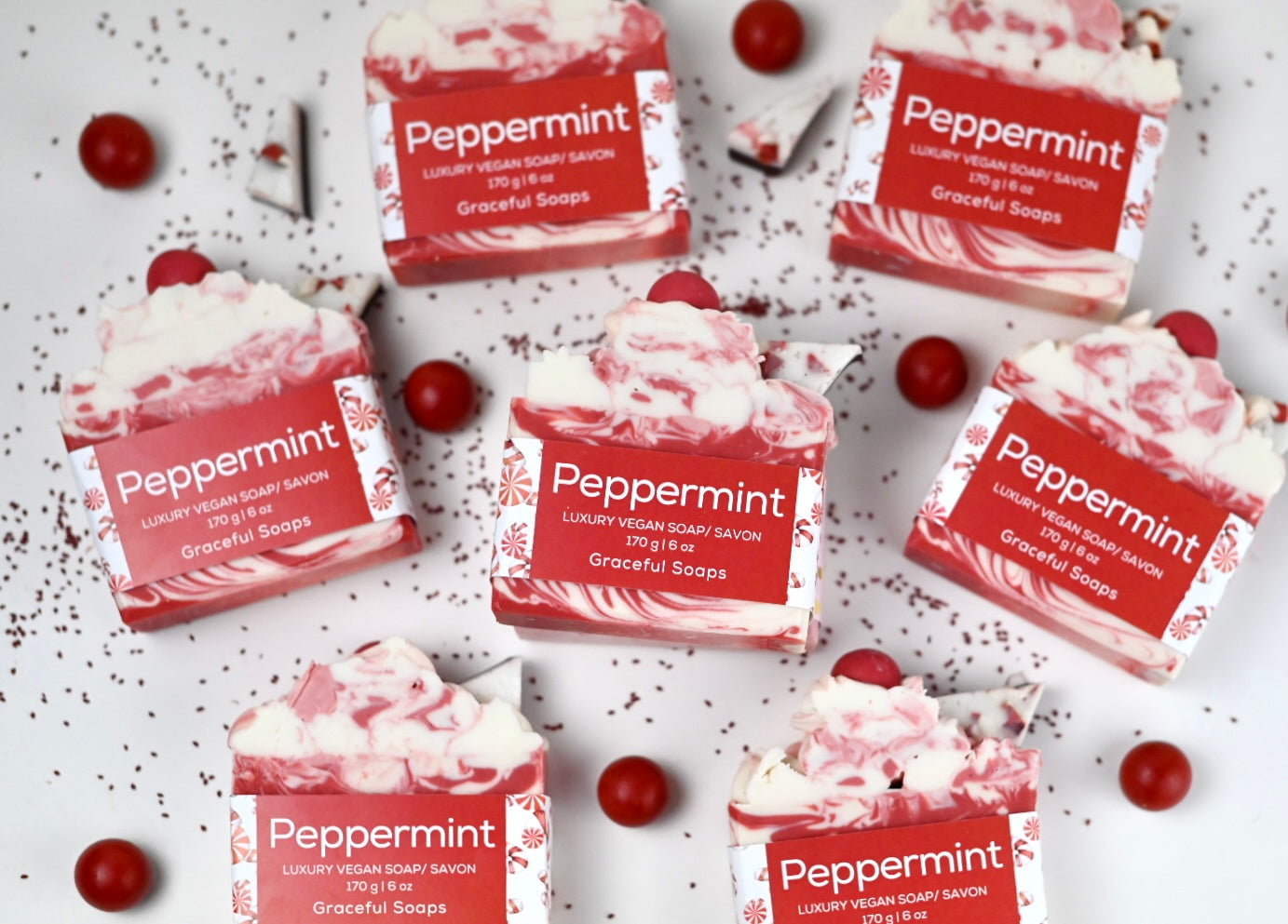 Embark on a sensory journey with our enchanting Peppermint soap, a fragrance that captures the essence of winter's magic. Immerse yourself in a symphony of cool peppermint, sugared snow, fresh balsam, and vanilla buttercream – the perfect holiday indulgence for your skin.